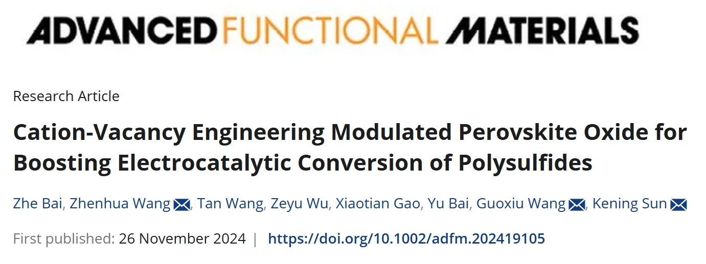 近日,新澳门六合彩直播 孙克宁教授课题组在锂硫电池钙钛矿氧化物缺陷催化领域取得重要进展,相关成果发表在国际顶级期刊《Advanced Functional Materials》(影响因子18.5),北京理工大学孙克宁教授、王振华教授和悉尼科技大学清洁能源技术中心汪国秀教授为共同通讯作者,北京理工大学为第一通讯单位。