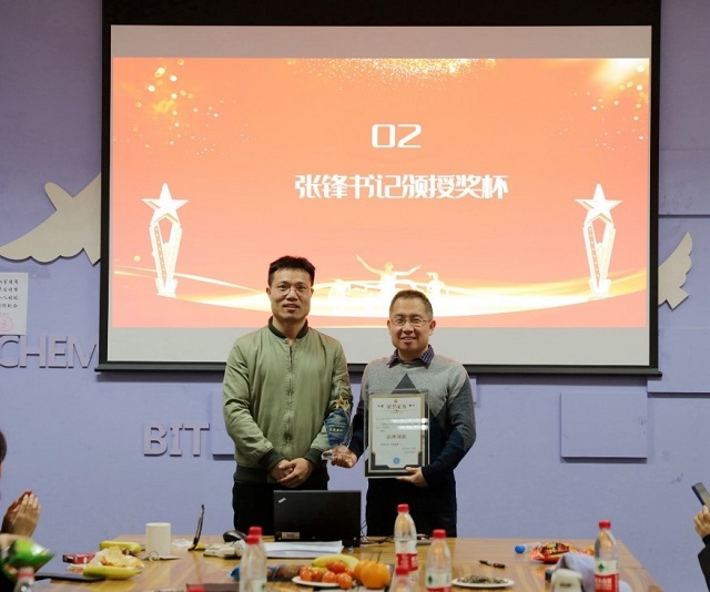 接下来,张锋为理论与计算化学团队颁发2021年新澳门六合彩直播 优秀导学团队“品牌团队”荣誉证书及奖杯。张锋赞扬了团队在队伍建设、科学研究、人才培养等方面取得的成绩,特别感谢了团队学生积极参与学院学生工作,为丰富学院学生文化体育生活做出的贡献。