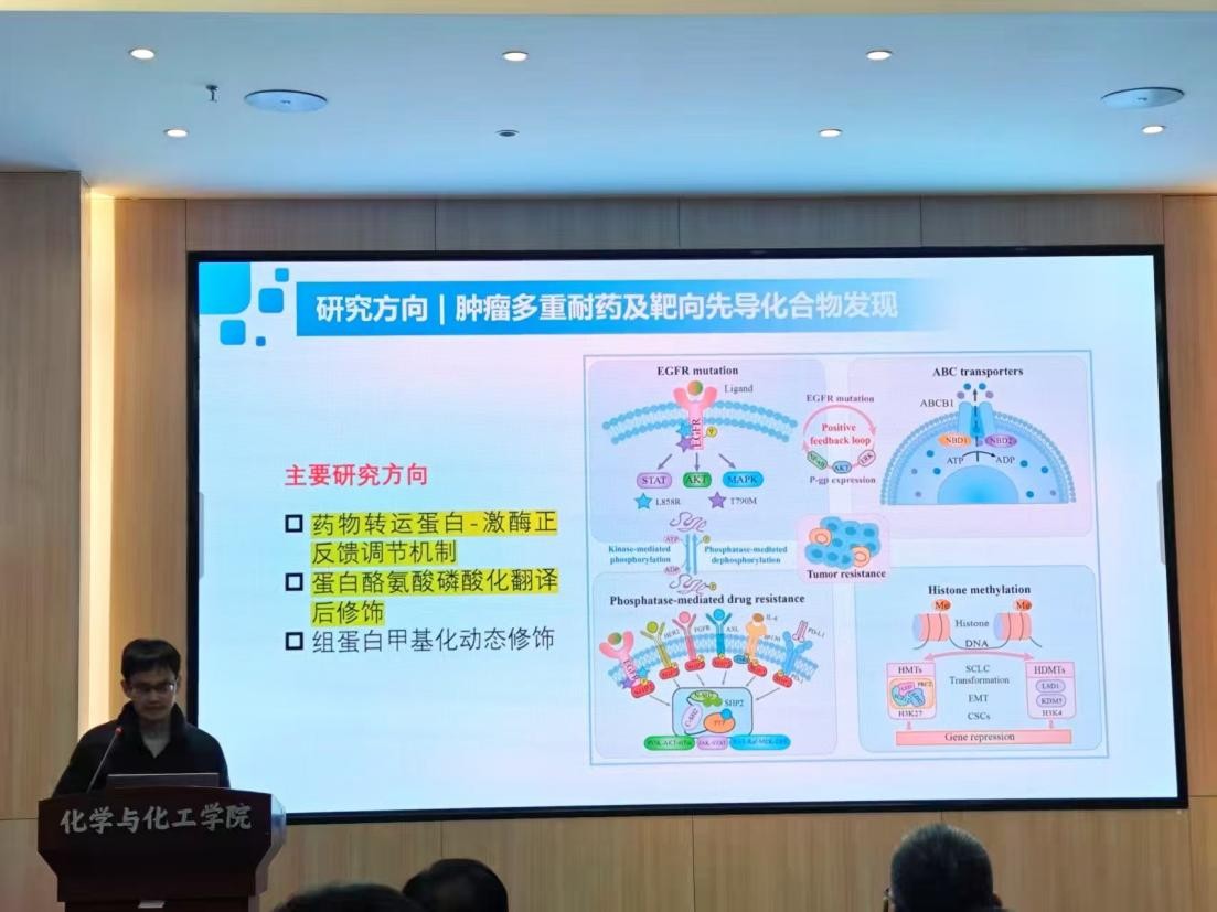 余斌教授深入探讨了靶向表皮生长因子受体(EGFR)相关通路在克服肿瘤耐药性方面的最新研究进展。EGFR突变与肿瘤耐药密切相关,尤其是针对T790M突变的第三代EGFR抑制剂已成为非小细胞肺癌(NSCLC)治疗的一线药物。余教授详细介绍了其课题组在EGFR靶向药物研发方面的进展,并探讨了多靶点治疗和药物联合疗法在克服耐药性问题中的潜力。余教授还分享了其团队在发现克服肿瘤耐药的先导化合物方面的研究成果,强调了深入理解EGFR突变及其引发的耐药机制在NSCLC靶向治疗中的重要性。此次讲座不仅为北京理工大学的师生提供了丰富的学术见解,还进一步加强了郑州大学与北京理工大学在科研领域的合作与交流。展望未来,两校将继续深化合作,共同推动我国药学与新药创制领域的创新与发展。