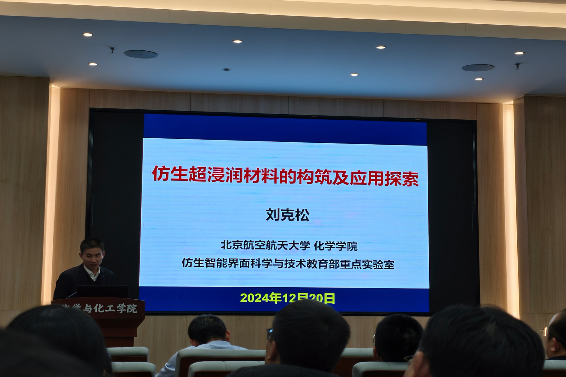 应新澳门六合彩直播 邀请,北京航空航天大学刘克松教授于2024年12月20日做客北理工“百家大讲堂”系列论坛,为我院广大师生带来题为“仿生超浸润材料的构筑及应用探索”的精彩学术报告。本次报告在生态楼118报告厅进行,由杨国昱老师主持,近六十名化院师生参加了报告。