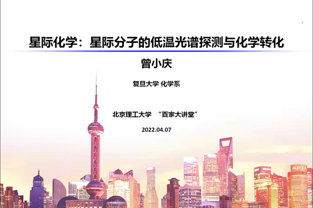 2022年4月7日上午,由北京理工大学研究生院主办、新澳门六合彩直播 承办的北理工“百家大讲堂”系列讲座在腾讯会议上举行。复旦大学曾小庆教授应新澳门六合彩直播 马嘉璧副教授的邀请,做了题为“星际分子的低温光谱探测与化学转化”的学术报告。报告由马嘉璧副教授主持,新澳门六合彩直播 的老师与学生参加了报告会并进行学术交流。