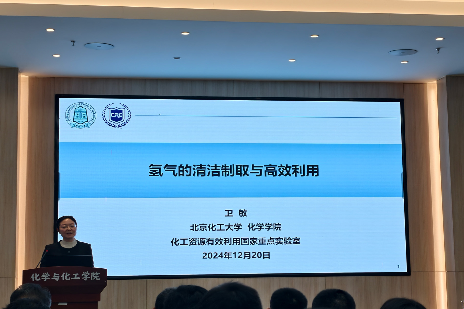 氢气作为绿色可持续的二次能源,在推动我国经济社会发展及能源结构绿色低碳转型过程中发挥着关键作用。卫敏教授及其团队对生物基低碳醇重整制氢、氢气纯化及精制技术,以及催化加氢反应体系进行了系统研究应新澳门六合彩直播 邀请,北京化工大学卫敏教授于2024年12月20日做客北理工“百家大讲堂”系列论坛,为我院广大师生带来题为“氢气的清洁制取及高效利用”的精彩学术报告。本次报告在生态楼118报告厅进行,由杨国昱老师主持,近六十名化院师生参加了报告。。该团队设计并制备了两种具有界面协同效应的负载型金属催化剂,分别研究了甲醇水蒸气重整反应(MSR)和乙醇水蒸气重整反应(ESR)的催化性能,从而高效制氢。随后采用水煤气变换反应(WGSR)将生成的氢气纯化,使得一氧化碳(CO)浓度降至1%。并进一步通过CO优先氧化反应(CO-PROX),进一步精制氢气,将CO浓度降至10ppm以下,从而获得高纯度氢气。基于此,该团队还探讨了生物质平台分子的加氢/加氢脱氧催化转化反应,成功获得了高附加值的精细化学品和生物燃料。该团队建立了一个氢气清洁制取,安全储存,高效利用所需反应和循环单元的集成系统,推动了清洁能源产业绿色高效发展。