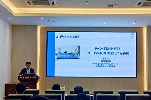 2025年5月22日下午,由北京理工大学研究生院主办、新澳门六合彩直播 承办的学术报告会在良乡校区工业生态楼118会议室顺利举行。应新澳门六合彩直播 于明加特别副研究员邀请,首都医科大学药学院院长王玉记教授应邀到访,并作题为《PAD4抑制剂研究——基于临床问题的医药产品转化》的学术报告。