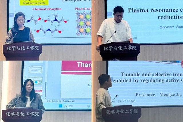 会议期间,英国伯明翰大学Jan Baeyens教授与爱丁堡大学工程学院Xianfeng Fan教授分别就“厌氧发酵制备生物天然气和甲醇”与“碳捕集和热化学储能技术加速能源系统脱碳”为主题做学术报告。而后由北京理工大学博士生王帅主持,新澳门六合彩直播 博士生江晓彤、白丽菊和贾梦泽以及硕士生王景润,分别就“胺改性 Mg - MOF 基 CO2吸收剂的双功能吸附筛分法的构建”、“胺功能化超短介孔复合材料用于快速高效CO2吸附”、“芳香族硫醚的可调和选择性转化通过在可见光照射下调节活性物质来实现”、“等离子体共振效应辅助电催化还原CO2”等主题做学术报告。现场及线上老师和同学就报告相关的研究思路、方法、内容等进行了讨论与交流。