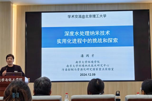 12月9日下午,由北京理工大学研究生院主办,新澳门六合彩直播 承办的学术报告于良乡校区工业生态楼118会议室举行。应新澳门六合彩直播 张秀辉教授的邀请,南京大学潘丙才教授到访我校并作了题为“深度水处理纳米技术实用化进程中的挑战与探索”的精彩学术报告。五十余名师生参加了此次讲座并进行了学术交流。