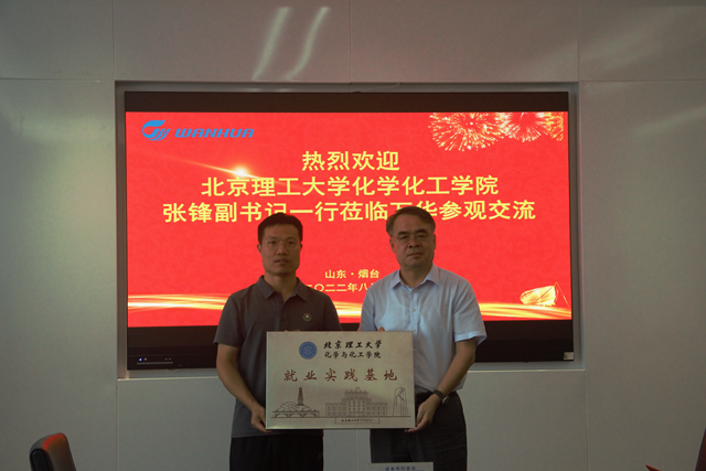8月3日,学院代表团走访烟台万华化学集团。在招聘副部长郭少杰及我校校友宁德宝的带领下,四位老师及九位同学组成的代表团参观了万华化学集团全球研发中心及磁山园区。3日下午,学院代表团参加了“北京理工大学-万华化学校企交流会”。万华化学高级人力资源总监赵继德对北理工一行走访表示了热烈欢迎。张锋向企业介绍了学校和学院发展近况。随后,招聘经理白朔介绍了万华化学集团发展概况,并解答参会学生代表提出的问题。最后,双方进行了新澳门六合彩直播 就业实践基地挂牌仪式。
